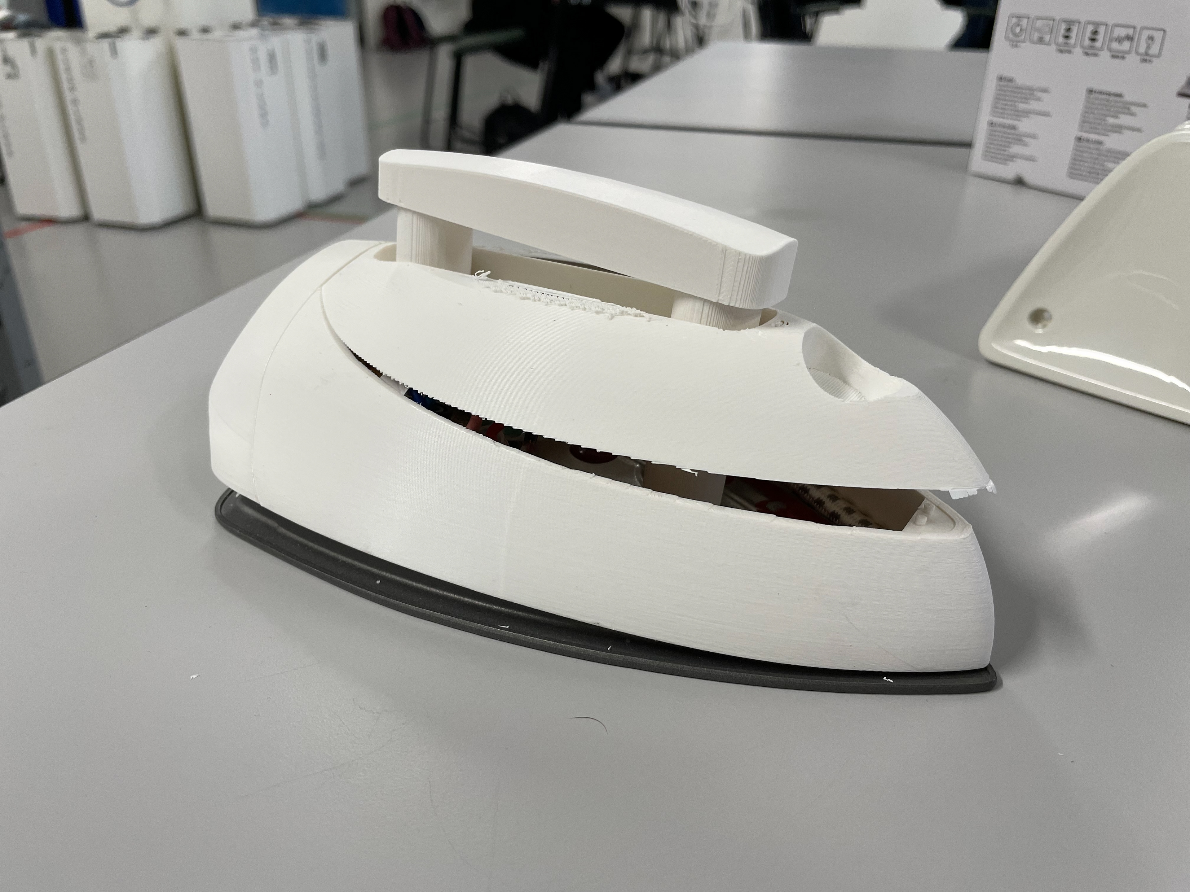 Projektet gick från skiss till 3D-modell i Alias, renderat i Keyshot, och realiserades genom en lermodell för ergonomi, följt av en 3D-printad prototyp som efter bearbetades med spackling, slipning och lackning för att nå slutlig yta och form.
